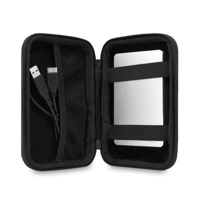 MediaRange hard disk drive wallets are perfect for safely transporting your external hard disk drives. The robust zipper and shock-resistant hard shell padding of the premium nylon wallets provide optimal protection from shocks, scratches, dirt and everyday wear and tear. The carrying strap makes it comfortable to carry when you are on the go. Two elastic bands securely hold the external drive inside and an extra net pocket provides additional storage space for accessories.