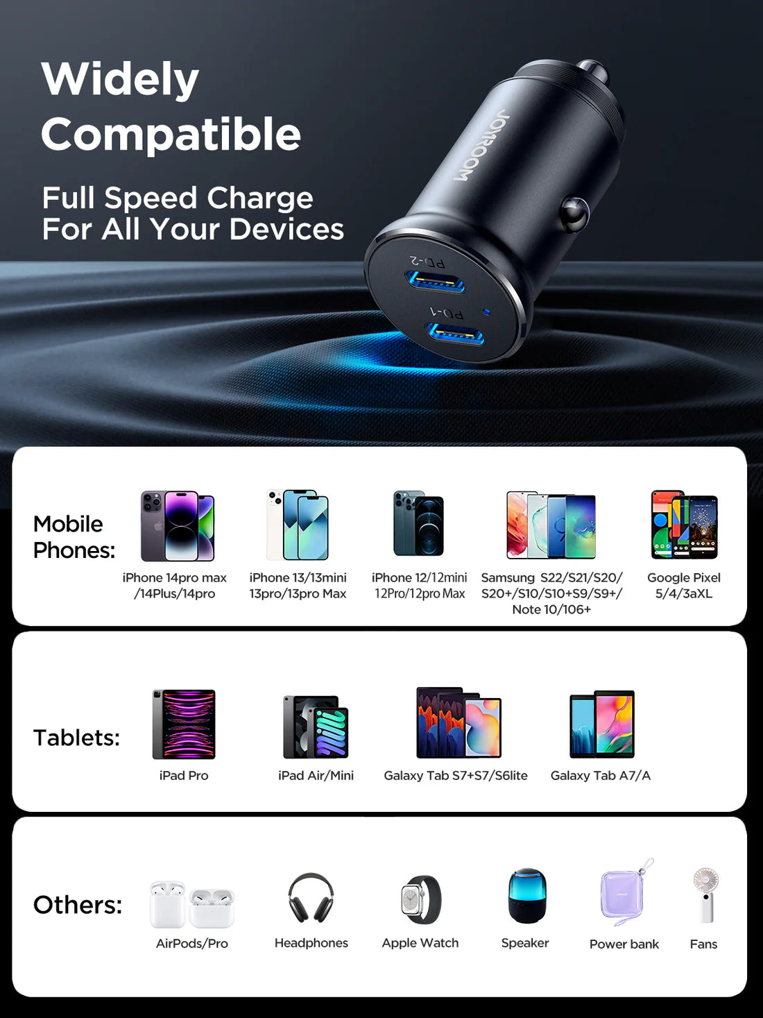 JOYROOM JR-CCN06 30W 2C mini MetalCar Charger