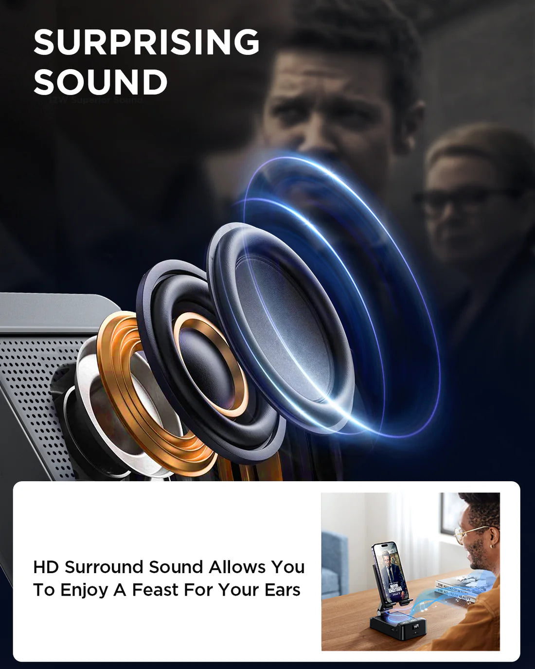 1. Innovative design, 3-in-1 multifunctional wireless speaker with phone holder, works as a speaker, phone stand, charging station