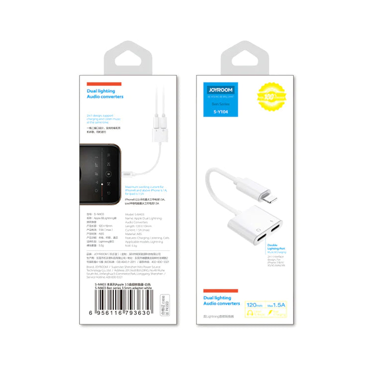 JOYROOM S-Y104 Ben Series double lightning adapter-White