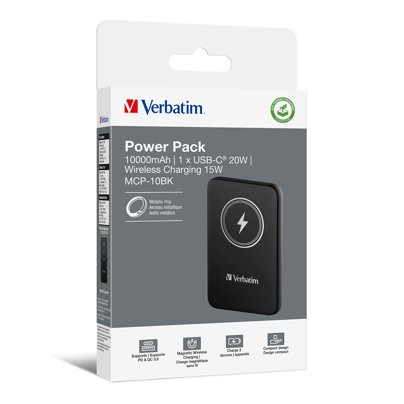 Verbatim Charge 'n' Go Power Bank 10000mAh Magnetic Wireless Charging - Black