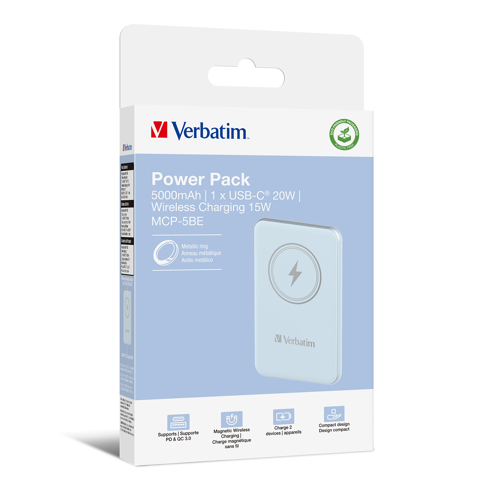 Verbatim Charge 'n' Go Power Bank 5000mAh Magnetic Wireless Charging - Blue