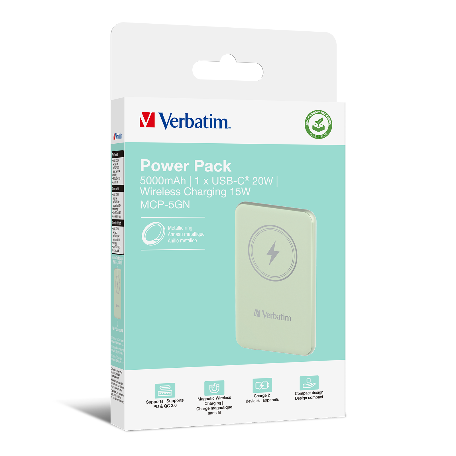 Verbatim Charge 'n' Go Power Bank 5000mAh Magnetic Wireless Charging - Green
